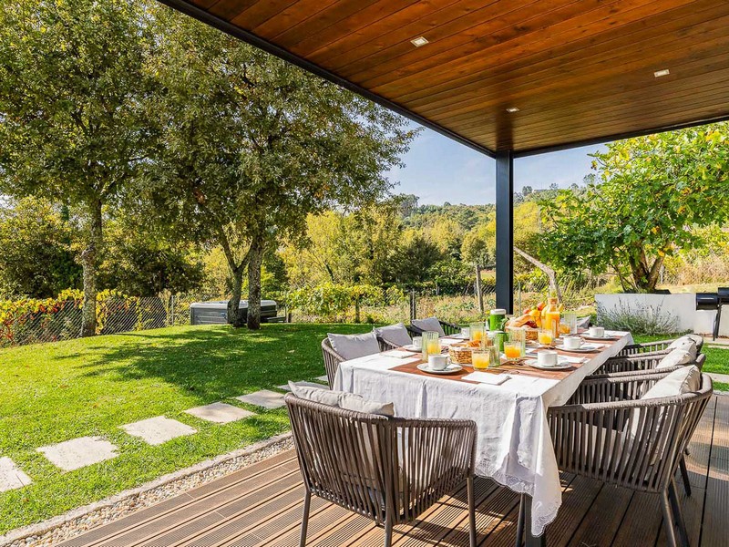 Quinta da Lameirinha Douro, Boutique Home is a private countryside retreat located in Baião, set within the peaceful landscape of the Douro region. Surrounded by nature and garden views, the property offers a tranquil setting with generous outdoor living areas, including a patio, terrace and a heated swimming pool. Guests also enjoy an outdoor hot tub for up to five guests, ideal for relaxing moments overlooking the surrounding scenery. Complimentary Wi-Fi, private on-site parking and an electric vehicle charging station are available throughout the stay. An outdoor fireplace completes the atmosphere, creating a welcoming space for quiet evenings outdoors.