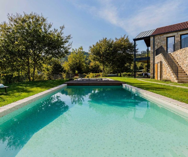 Quinta da Lameirinha Douro, Boutique Home is a private countryside retreat located in Baião, set within the peaceful landscape of the Douro region. Surrounded by nature and garden views, the property offers a tranquil setting with generous outdoor living areas, including a patio, terrace and a heated swimming pool. Guests also enjoy an outdoor hot tub for up to five guests, ideal for relaxing moments overlooking the surrounding scenery. Complimentary Wi-Fi, private on-site parking and an electric vehicle charging station are available throughout the stay. An outdoor fireplace completes the atmosphere, creating a welcoming space for quiet evenings outdoors.